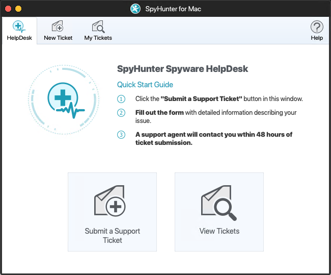 To ensure complete malware removal and customer satisfaction, SpyHunter for Mac comes with an integrated personalized one-on-one technical support service, the SpyHunter HelpDesk for Mac.