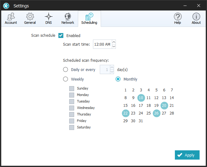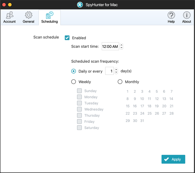SpyHunter can be easily configured to automatically scan your system for malware and other threats at specific individual times or intervals preset by you. Scheduled scans are configured to run automatically, even if you are away from your computer. Scans can be scheduled to run at daily, weekly, and monthly intervals.