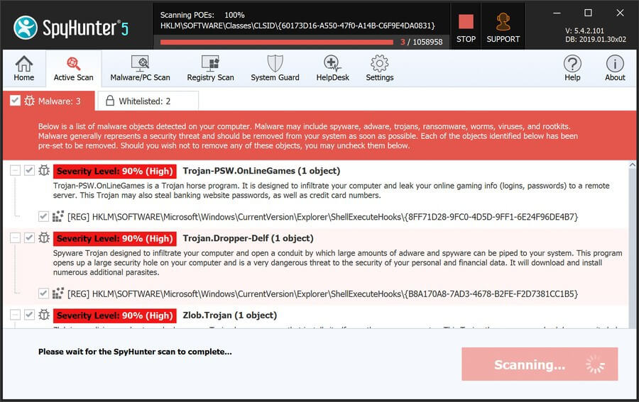 Today’s malware landscape changes at an ever-increasing pace and it is unlikely that it will slow down any time soon. To stop malware and other security threats, users need a powerful yet easy-to-use anti-malware solution. SpyHunter has been designed with that goal in mind - its adaptive malware detection engine is supported by backend cloud-based threat analysis systems offering robust real-time defense against malware infiltrations. The integrated Compact OS operates at a lower level than Windows and is an integral tool for the removal of rootkits and other stubborn malware infections. SpyHunter also includes an active "System Guard" functionality designed to block malware and other harmful objects before they can infiltrate the subscribers' computer.